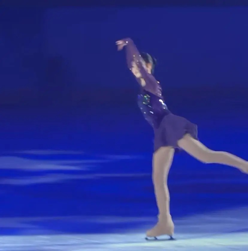 在上海冰场上,奥莉再一次展现了她那优美顺畅的滑行动作。身形轻巧,像是在冰面上翩然起舞,显得格外优雅。才13岁的小姑娘,已经长得亭亭玉立,风采十足。