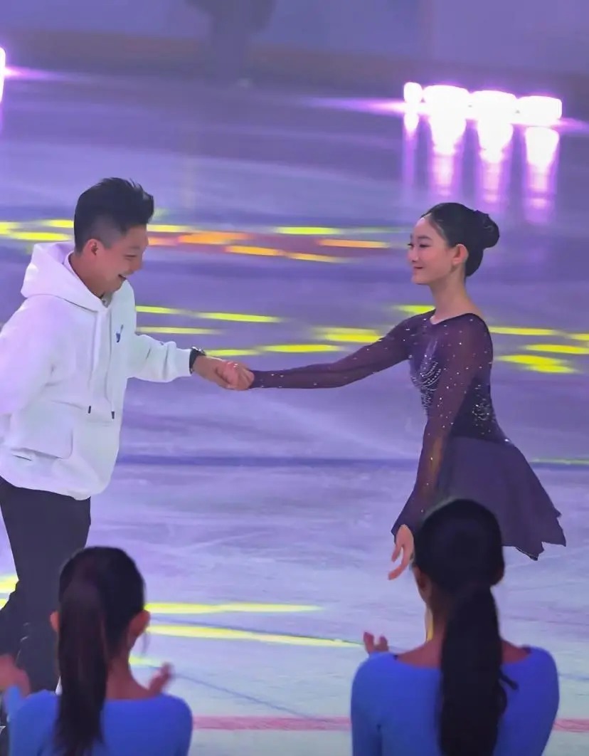 复杂的动作全是奥莉自己完成的,李小鹏只是在场亮个相,和大家打个招呼,偶尔还能做一些简单的滑行动作。