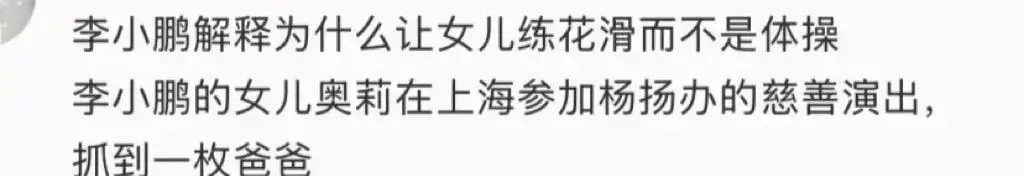 李小鹏说不让女儿练体操,理由是:练体操压力挺大的。是吧,有这样的父亲,大家就会对奥莉抱有更高的期望。