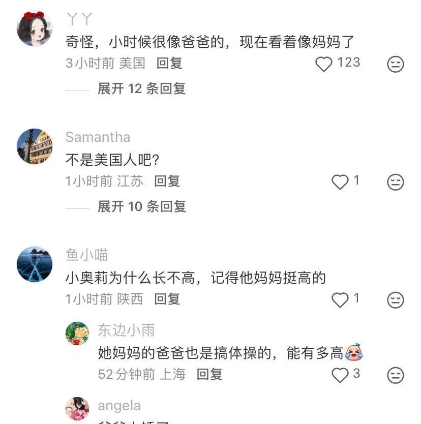 其实奥莉小时候更像爸爸一些,不过随着年龄增长,慢慢变得越来越像妈妈了,尤其是五官。就连身高,好像也是遗传自妈妈,妈妈比爸爸高点。13岁的奥莉已经和爸爸差不多一样高了,估计以后还会长得更高点。